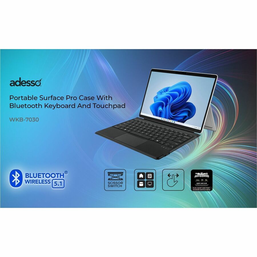 Simply designed for convenience and utility, the aluminum Bluetooth keyboard combined with a cover that converts into a stand holding the Surface Pro versions. Turn your mobile device into a mobile work station wherever you are. The slim case magnetically secures and protects the tablet and keyboard when traveling. The low profile scissor-switch keys provide a tactile response for faster typing. At only6mm thick, the lightweight yet sturdy aluminum keyboard works equally well on the road or in your home office.