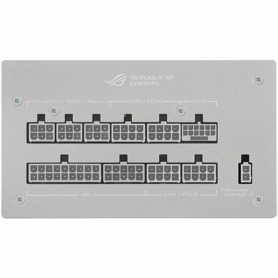 The ROG Strix 1000W Gold Aura White Edition combines premium components, superior cooling and captivating RGB illumination to create a formidable force. With huge ROG heatsinks, a high-efficiency Axial-tech fan, and a striking aluminum finish, it's a pumped-and-primed PSU powerhouse for your next gaming rig.