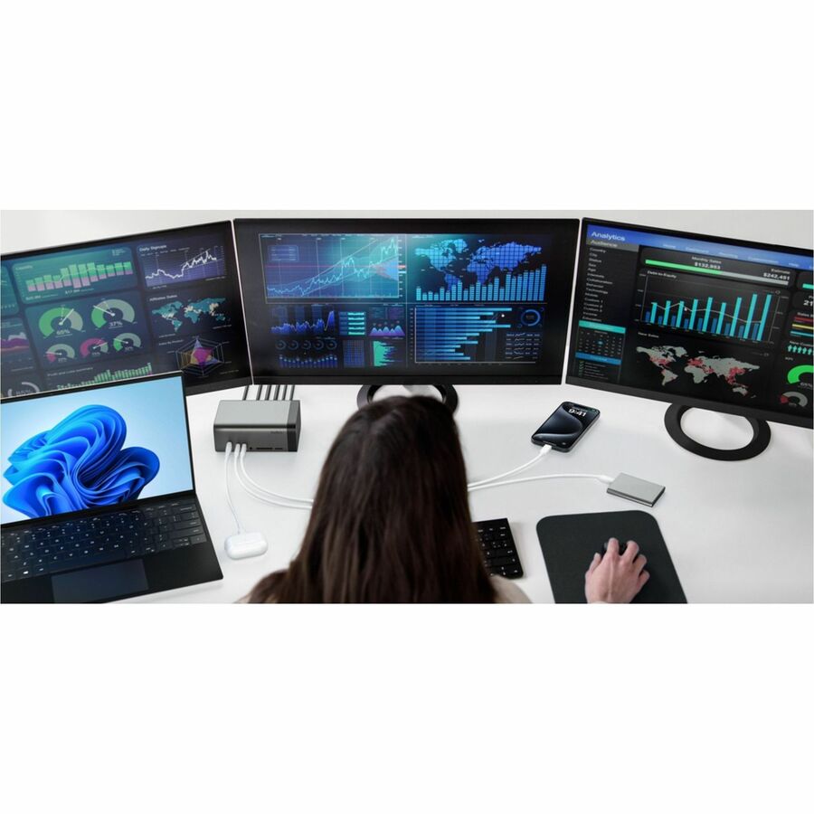 Belkin 11-in-1 Triple Display USB-C Docking Station - 10 Gbps - 1xUSB-A, 4xUSB-C, 2xHDMI, 1xEthernet, 1x3.5mm Audio, 1xSD, 1xMicro SD - w/ USB-C Cable - Grey - for Monitor - Charging Capability - 150 W - USB Type C - 3 Displays Supported - 4K @ 60Hz, 8K @ 30Hz, 4K @ 120Hz - 3840 x 2160, 7680 x 4320 - USB Type-C - Network (RJ-45) - Wired - Ethernet - Windows - 146W