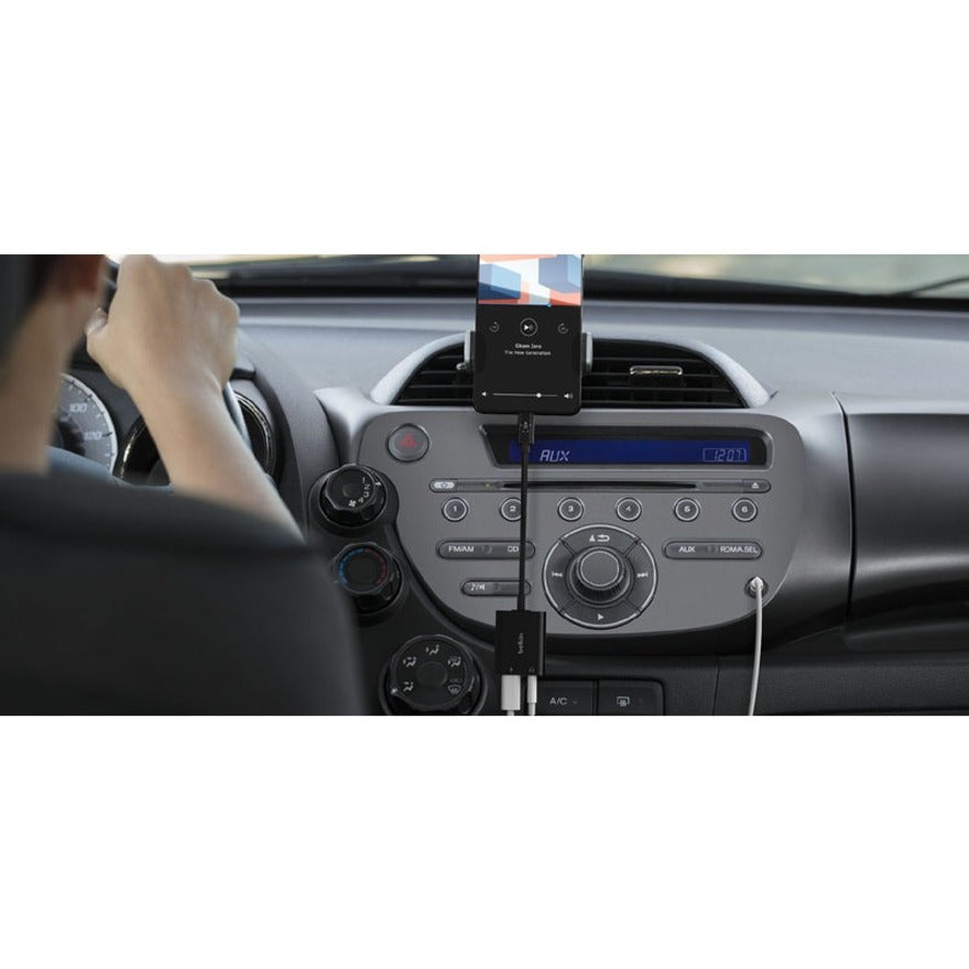 Plug the adapter into your phone's single USB-C port to configure both charging and audio output. A USB-C port enables a reliable charge and a 3.5mm audio jack allows you to listen to music or take calls.