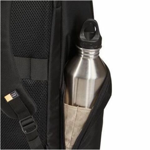 - Zipped side pockets can expand to hold a water bottle, or provide secure storage for a power brick
