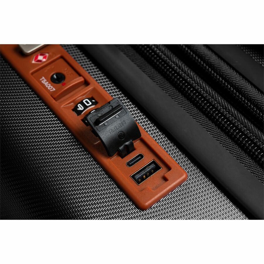 - Carry-on with built-in power bank pocket (cable included, power bank not included).