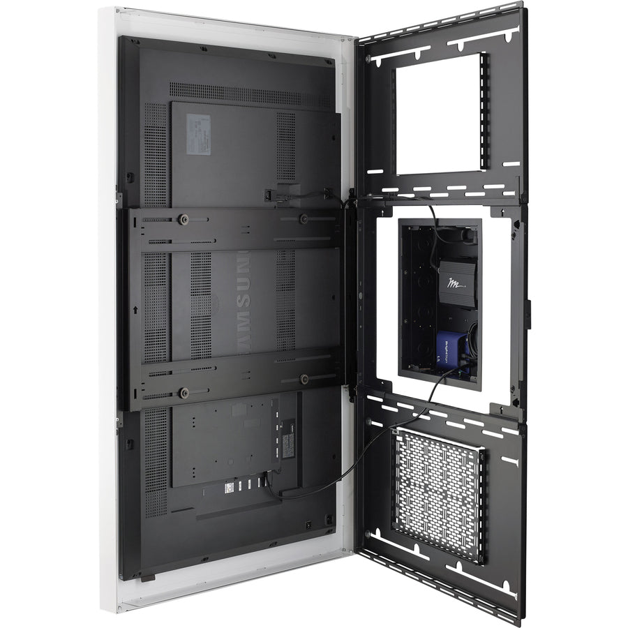 The Impact™ On-Wall Kiosk brings new flexibility to the digital signage enclosure market while maintaining a sleek aesthetic to complement a variety of environments. A depth-adjustable exterior frame allows for a variety of displays to be used. Reversible hinges help to avoid installation and service obstructions, and the exclusive design keeps the display mounted to the frame when opened, providing unparalleled service and maintenance access.