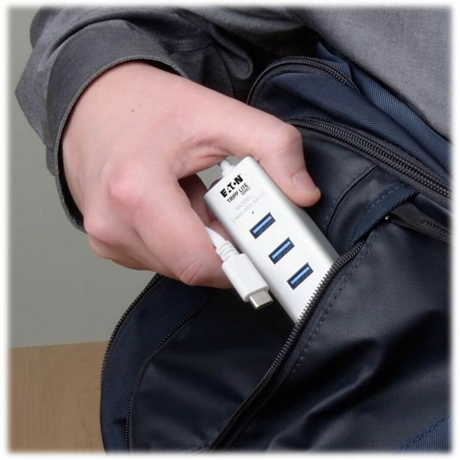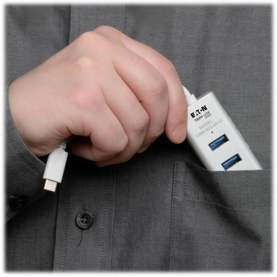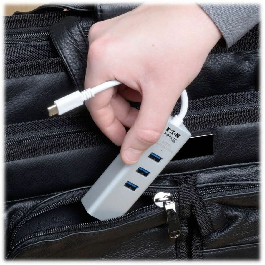 The U460-003-3A1G USB 3.1 Gen 1 USB-C Portable Hub/Adapter expands the potential of your tablet, laptop, Chromebook, MacBook, smartphone or PC's USB-C or Thunderbolt 3 port. It's ideal for adding a thumb drive and other USB peripherals, charging a mobile device, and connecting to a Gigabit Ethernet network-all at the same time.