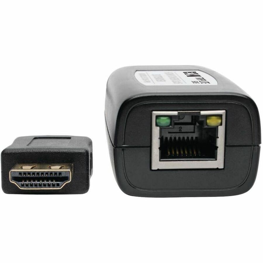 The B126-1P0 can extend a 1080i (60 Hz) signal up to 100 feet (30.5 m) or a 1080p (60 Hz) signal up to 50 feet (15.2 m) with a single Cat5e/6 cable (for best results, use 24 AWG solid-wire Cat5e/6 cable, such as Tripp Lite's N202-Series) between it and the transmitter. The built-in HDMI cable features a latching connector that helps prevent accidental disconnection. No external power is required.