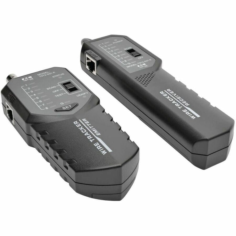 The T012-001-K Multi-Function Cable Tester is an essential tool for cable installers or anyone working in telecom or LAN environments. It allows you to track cable, find a short or breakage in non-powered wires, and perform wire mapping on RJ45 cables, detecting shorts and open wires. Powered by included 9-volt batteries in the main tester and remote probe unit, the T012-001-K can find an RJ11, RJ45 or BNC cable nestled within a group of cables. The probe unit's LED flashlight is handy for working in dark areas. Included headphones help you work in noisy environments. An adjustable volume button lets you fine-tune the tone generator.
