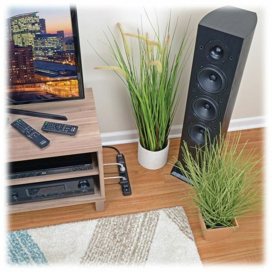 The 15-foot AC power cord with NEMA 5-15P plug allows the TLP615B to reach distant outlets, giving you flexibility in placing the power strip. Keyhole slots incorporated into the bottom panel provide convenient wall or desk mounting options for the black plastic housing.
