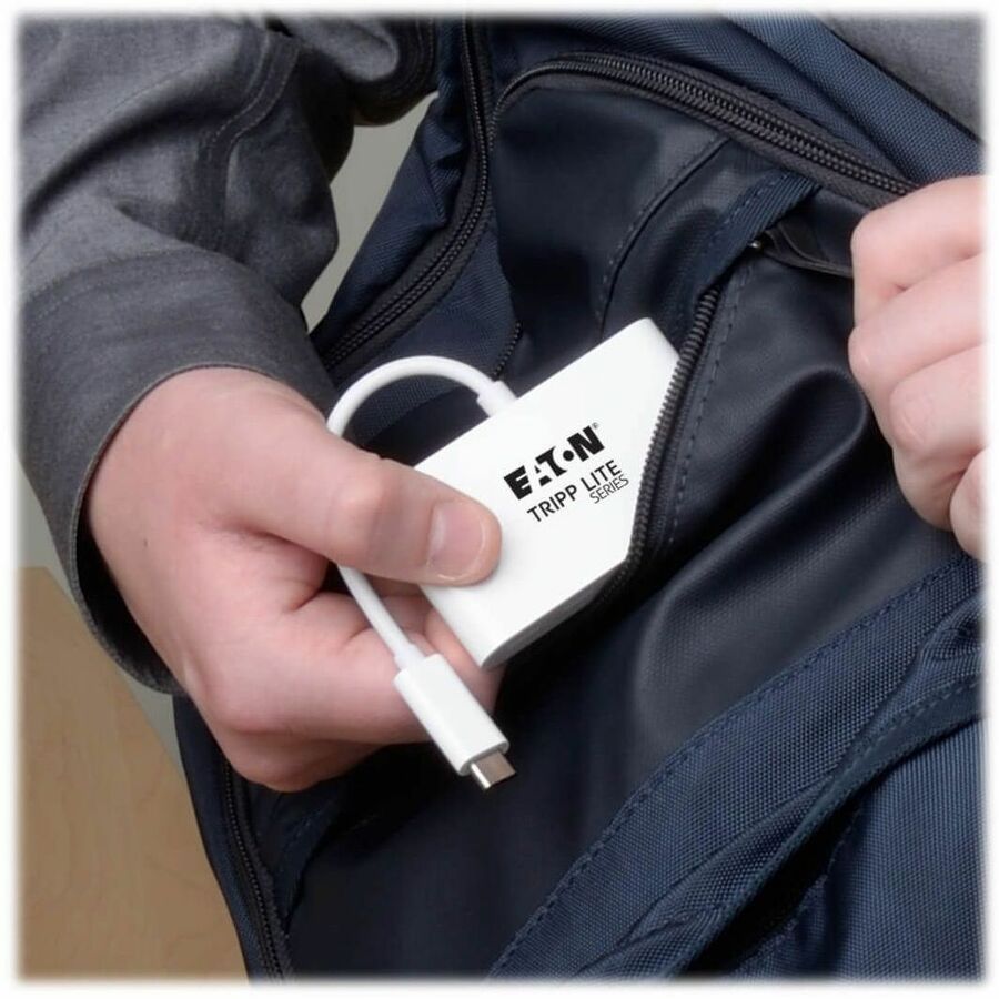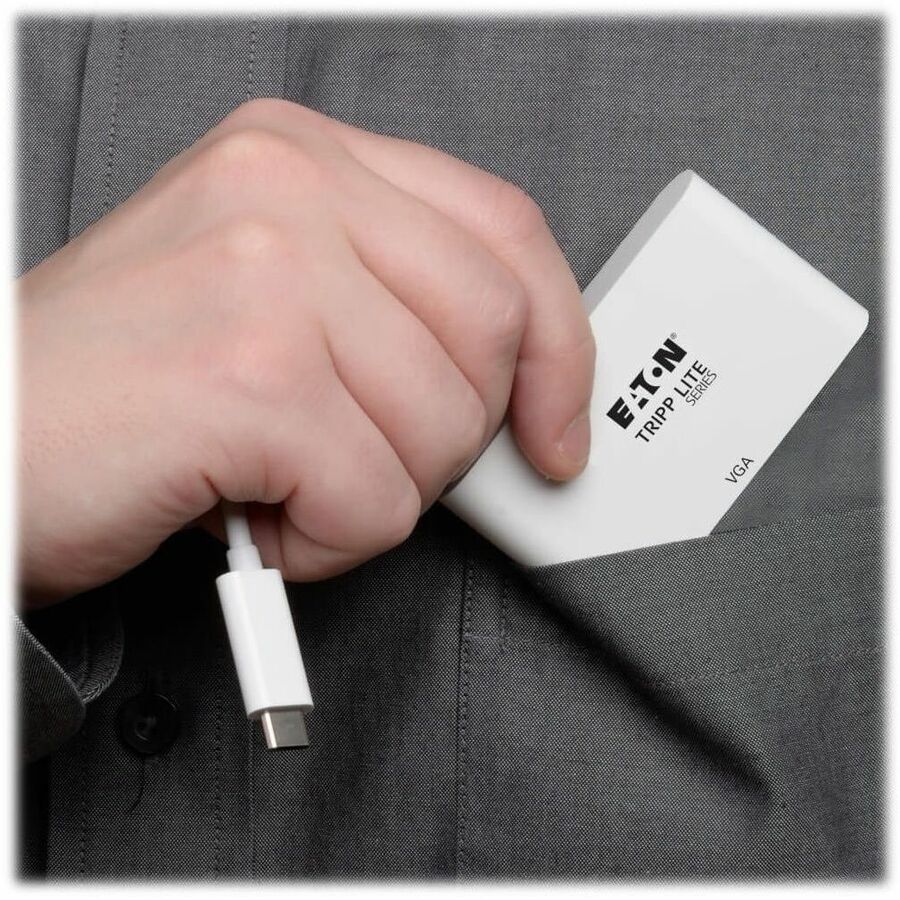 USB 3.1 Gen 1 USB-C to VGA Adapter expands the potential of your tablet, laptop, Chromebook, MacBook, smartphone or PC's USB-C or Thunderbolt 3 port. Plug-and-play technology makes installation quick and simple - with no software or drivers to install. Fumble-free, reversible USB-C plug connects in either direction for a quick connection every time. To send HD video to a VGA TV, projector or monitor, connect the VGA port to the display using a VGA cable (sold separately). The VGA port supports HD video resolutions up to 1920 x 1080 (1080p) at 60 Hz. The USB-A port accepts USB peripherals, such as a flash drive, mouse, keyboard or printer. Adapter is perfect for transmitting 1080p video to a large display, adding a thumb drive or other USB peripheral, and powering and charging a PD Charging-compliant mobile device all at the same time.