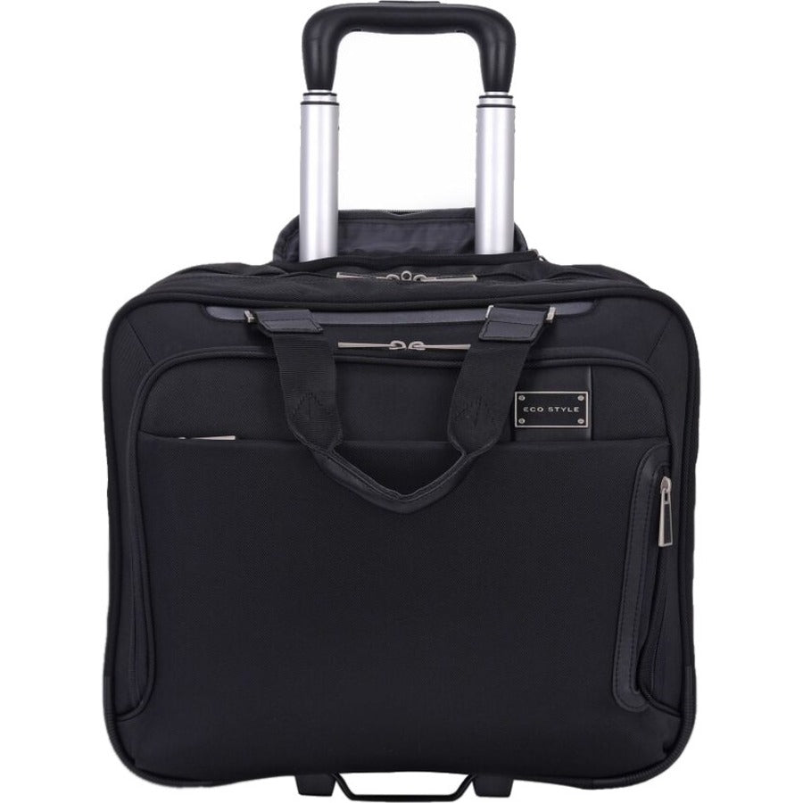 The Tech Exec Rolling Cases's premium design will accommodate laptops up to 16.1" and includes a dedicated tablet/iPad compartment. Includes an adjustable strap for added protection. Vertical & Horizontal front zippered pockets will accommodate your valuables and is easy to access. Front workstation includes: key fob, padded cell phone pocket, pen/pencil holders, additional padded accessory pocket along with business & credit card. Strategically placed zippered compartment directly across from laptop/tablet/iPad compartment to store your power devices and other accessories. Expandable file section + room for books/magazines along with 2 removable accessory pouches is ideal for the traveler on the go. Our signature hardware and sophisticated design is sure to turn heads wherever you go. Our 5 stage state interlocking handle along with state of the art wheels makes traveling hassle free. We have even included a pass thru strap which easily allows to easily attach onto another rolling case and weighs only 6.5 pounds.