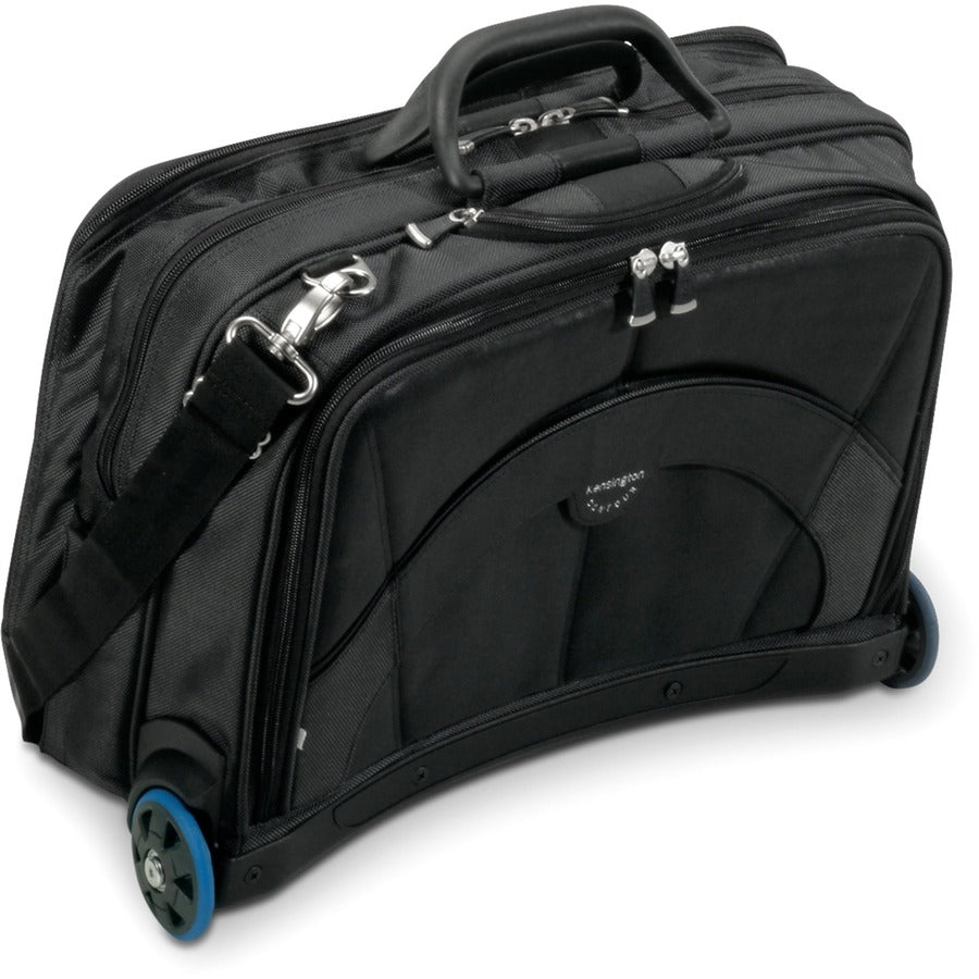 Roller case with ergonomic design delivers go-anywhere comfort and protection. Five stage telescopic handle and stable wheel design provide smooth rolling and wheeled comfort. In situations where the case needs to be carried, the Contour system helps reduce shoulder and neck fatigue by up to 35%. SnugFit protection system provides superior notebook computer safety.