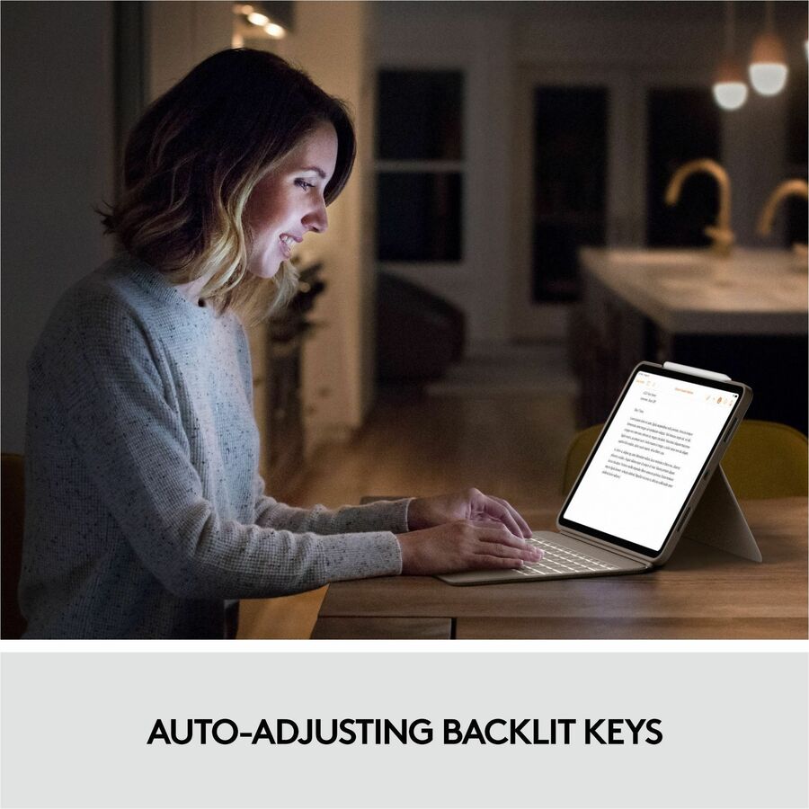 - Backlit, laptop-like keyboard: Backlit keys auto-adjust to your environment with 16 levels of brightness and a full row of iPadOS shortcut keys provide one-tap access to volume controls and more