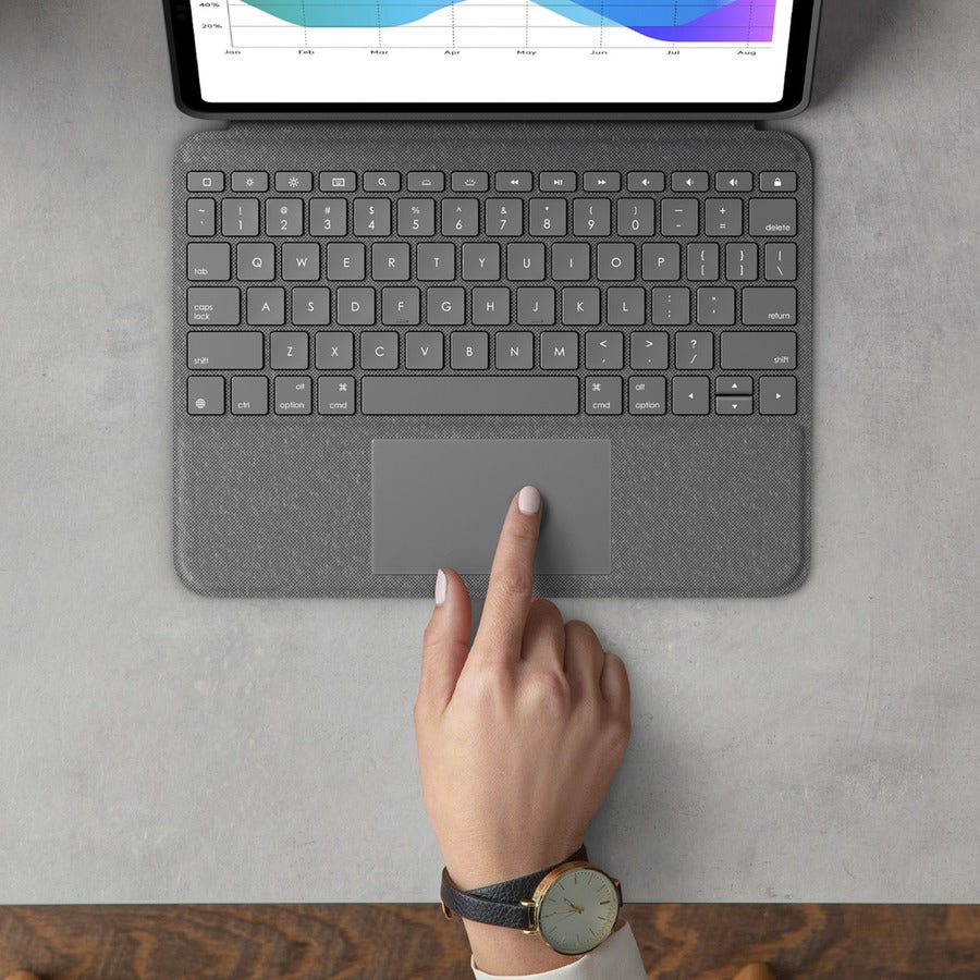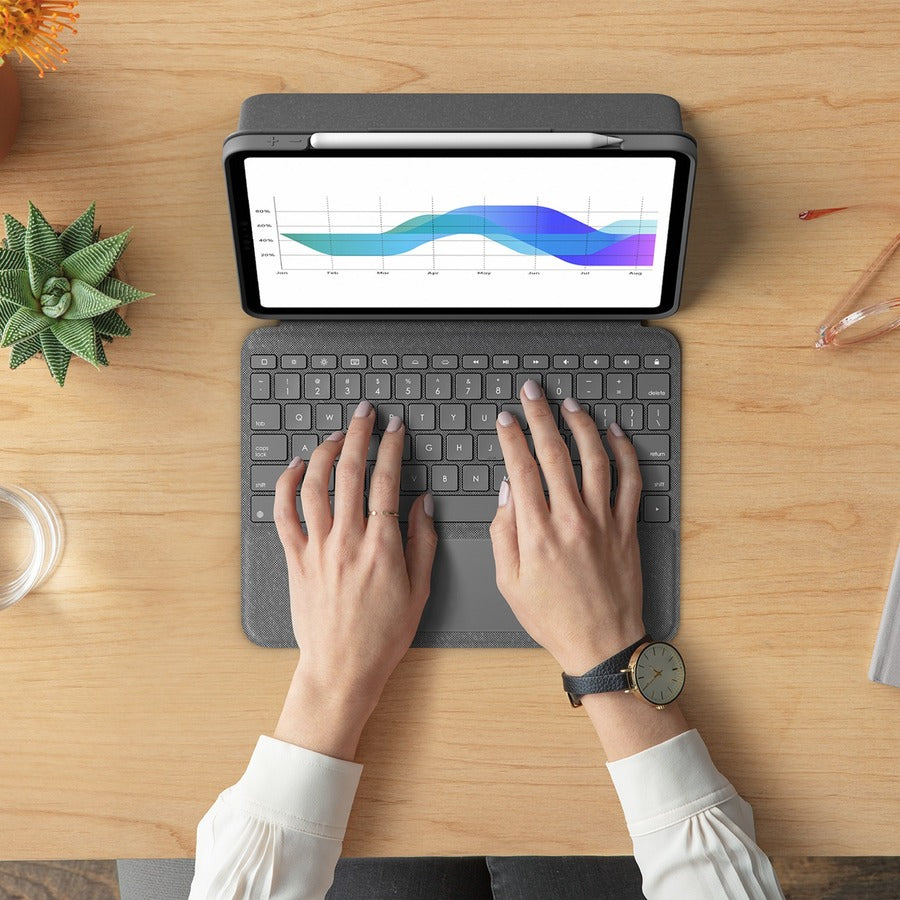 Logitech crafts high-quality, award-winning keyboards-it's how we've sold over 400 million of them. And we've poured all that experience into Folio Touch. The laptop-like keyboard features large, comfortable keys that deliver the perfect bounce every time for fast, accurate typing.