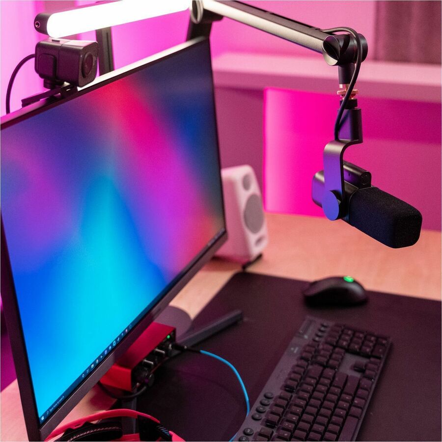 Logitech G Compass features a broadcast studio-grade design with enclosed aluminum construction, internal springs, and hidden-channel cable management. All friction hinges are hand-tightening - no need for any tools - and a full 360-degree rotation means you're covered for any application. Whether you adjust the boom to disappear on camera or feature it front and center with the mic, Compass fits perfectly into your game streaming or podcasting setup, and will impress your audience. With its smooth and quiet operation, it's designed for mics weighing up to 2.4 pounds (1.1 kg), including Yeti GX and Blue Sona.