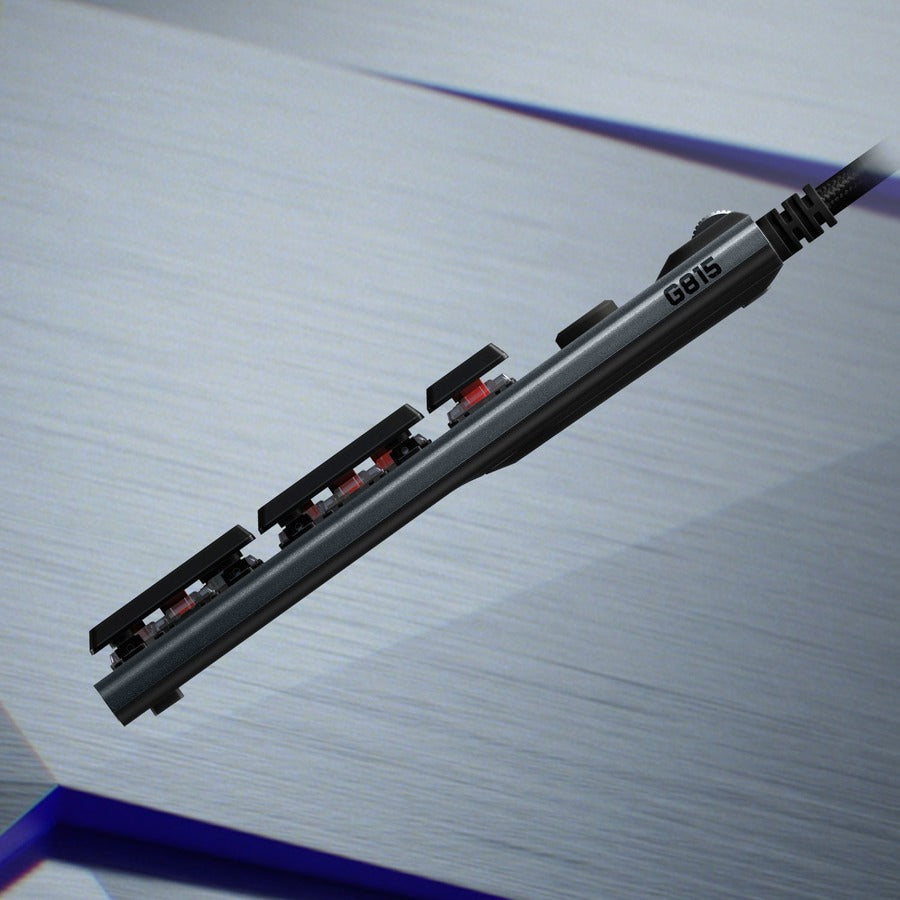 G815 packs advanced gaming technologies into a ultra-thin and sophisticated design. Fully customizable per-key, LIGHTSYNC RGB technology also reacts to in-game action, audio and screen color as you choose. With a sleek, impossibly thin yet durable and sturdy design, G815 features high-performance low-profile GL switches available in Clicky, Tactile or Linear experience.. Programmable G-keys let you create and execute complex actions simply and intuitively and the volume wheel and media keys give you fast, easy control over video, audio, and streaming. G815 also features a USB passthrough to quickly plug in a flash drive or another device to charge.