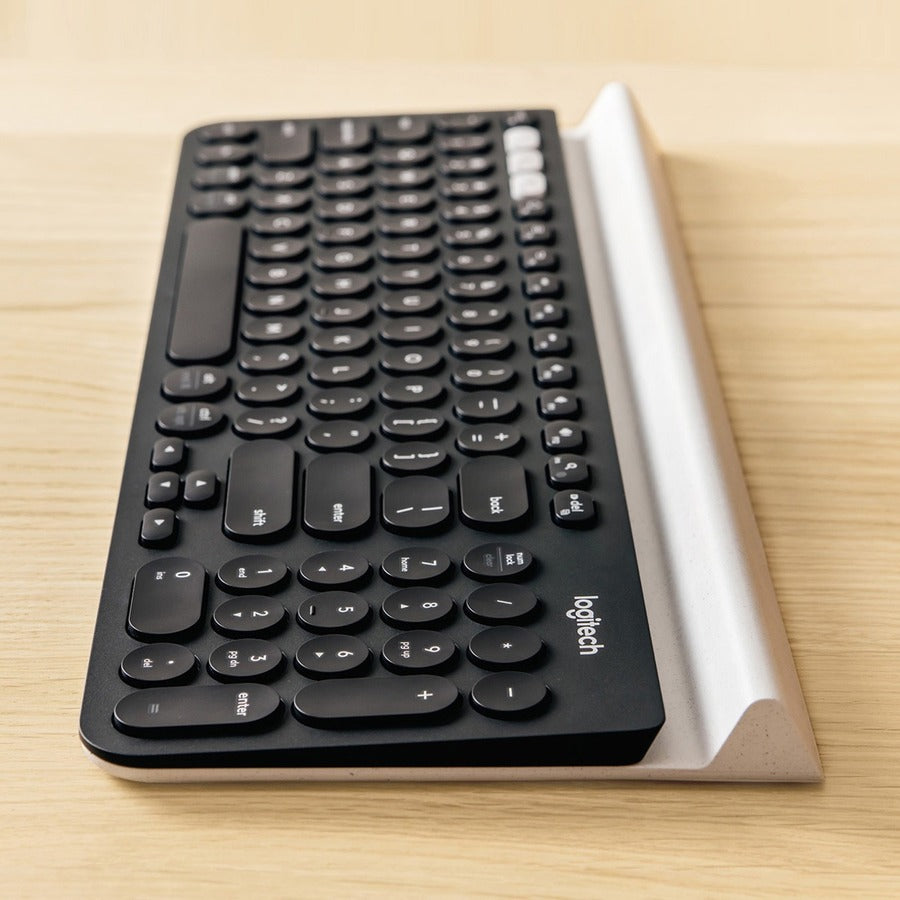 - Reliable Connectivity: Connect your device via Bluetooth or Unifying receiver; this keyboard also features an integrated rubber cradle that carefully holds various devices at a comfortable angle