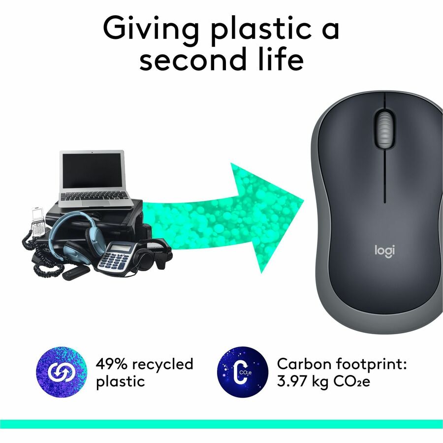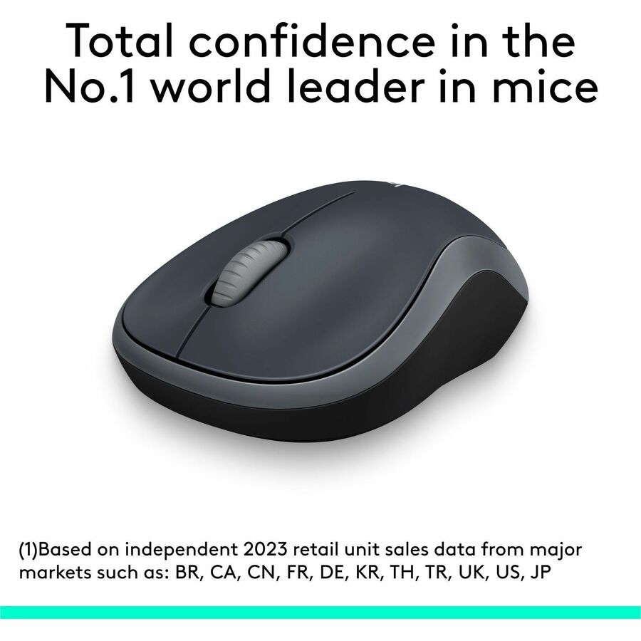 Logitech M185 Wireless Mouse, 2.4GHz with USB Mini Receiver, 1000 DPI Optical Tracking, Swift Grey 910-002225