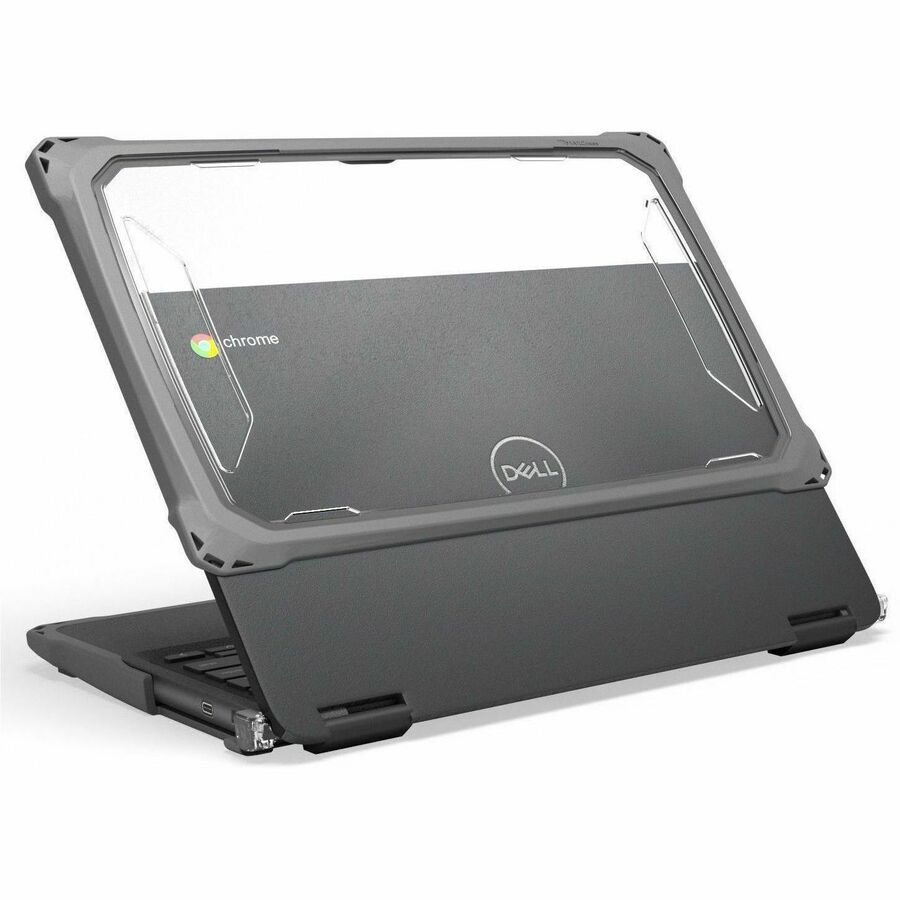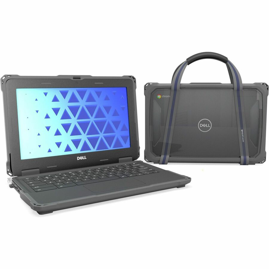 Featuring MAXCases' patented slide-on top design, the Extreme Shell-F Slide Case V3 protects Chromebooks with slide-on ease and enhanced screen protection in an updated, lighter-weight design. The slimmer top design further reduces carrying weight, without sacrificing durability or protection, while providing a sleek and easy-to-clean surface. The updated corners provide a slimmer profile designed to enhance protection under a wide range of impact circumstances. The innovative slide design disperses pressure evenly around the entire top perimeter, for a snug fit that eliminates pressure hotspots around the screen. Crafted with dual layers of tough TPU for outstanding impact and drop protection, the ESF3 case combines a cushioning inner layer with an oil- and dirt-resistant outer layer and is tested to meet MIL-STD 810G-516.6 for four-foot drops. The clear, rigid top and bottom panels prevent exterior damage and provide visibility for stickers and asset tags. The custom fit ensures easy access to all buttons and ports. For added convenience, the V3 design accommodates a handy carrying strap that fits snuggly against the case (sold separately).