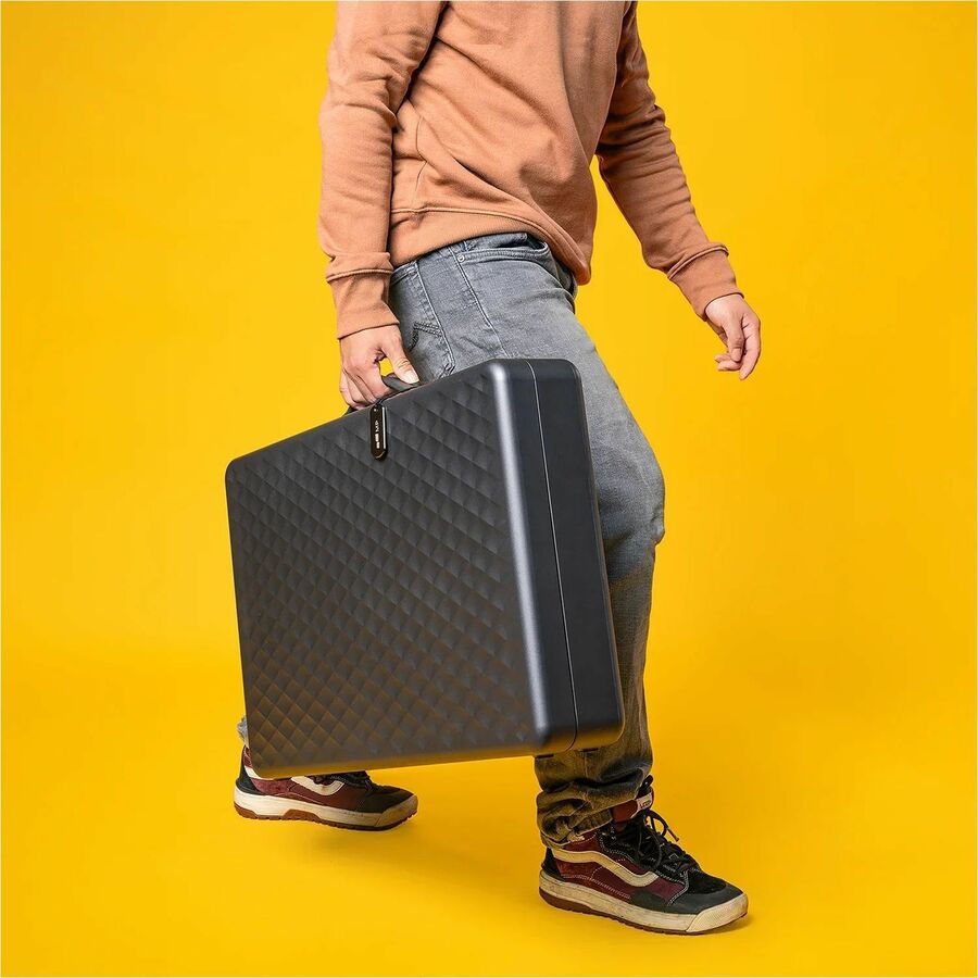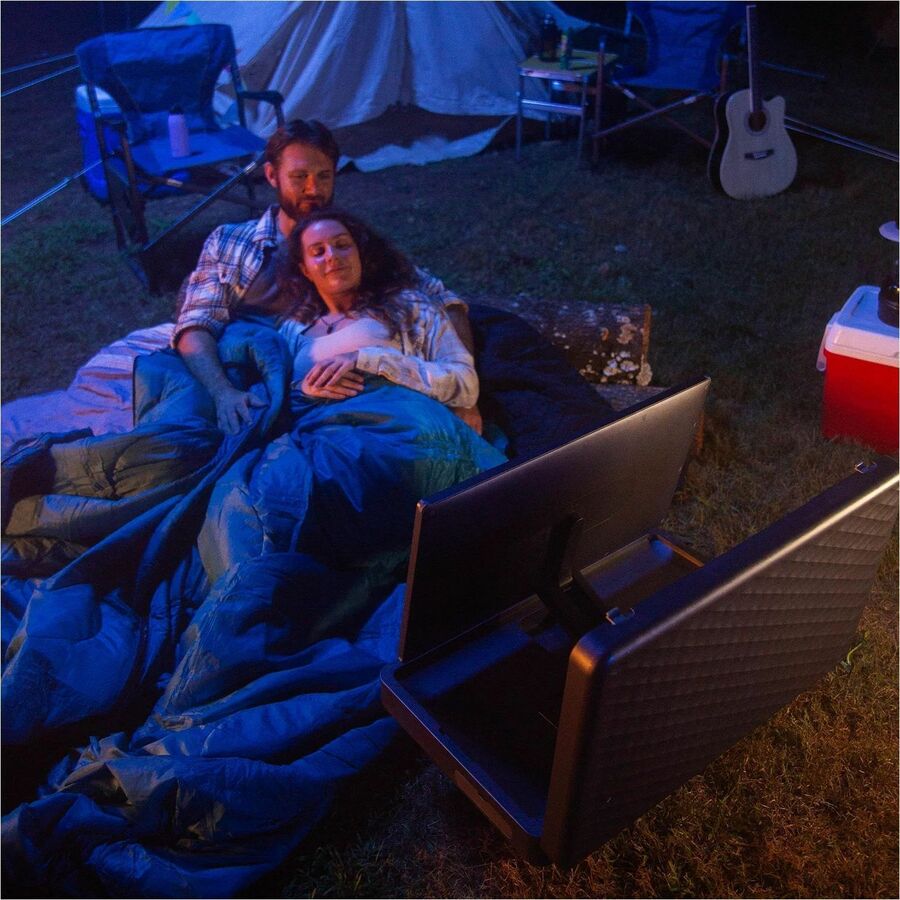 Pixcase folds into a suitcase-style form for easy carry and quick setup. Bring big-screen entertainment anywhere.
