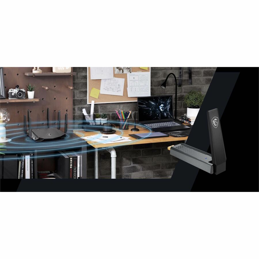 Thanks to beamforming technology, a router can focus the signal direction to the MSI AX1800 WiFi USB adapter to maintain a stronger connection. And MSI FIRST shorten the latency when MSI WiFi USB adapter works with MSI gaming router.