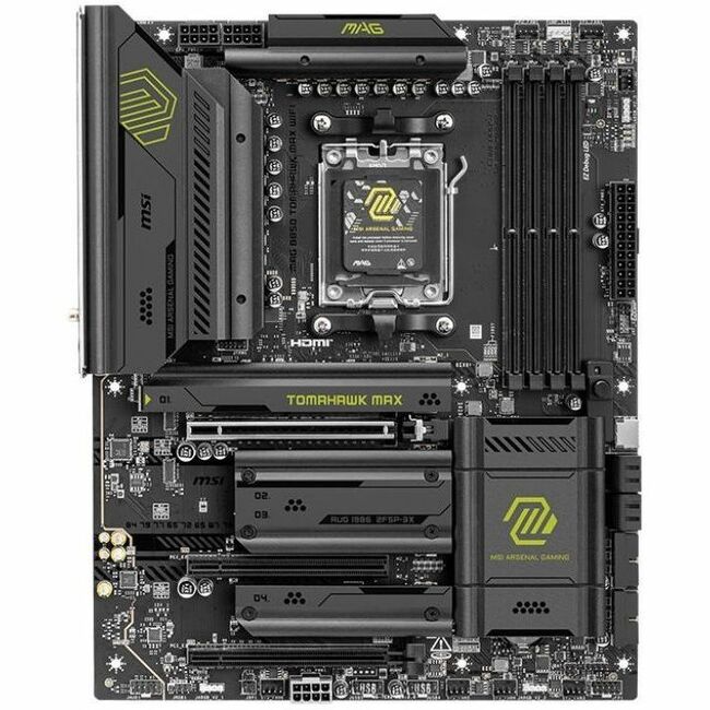 MAG B850 TOMAHAWK MAX WIFI is designed for gamers with a stable, durable and DIY friendly foundation for their PC builds. Coming up with true Wi-Fi 7 solution, 5G LAN, USB 20Gbps, PCIe 5.0 solutions, Supplemental PCIe Power, and exclusive EZ DIY features, it's ready for the battlefield of AMD Ryzen™ 9000 series processors.