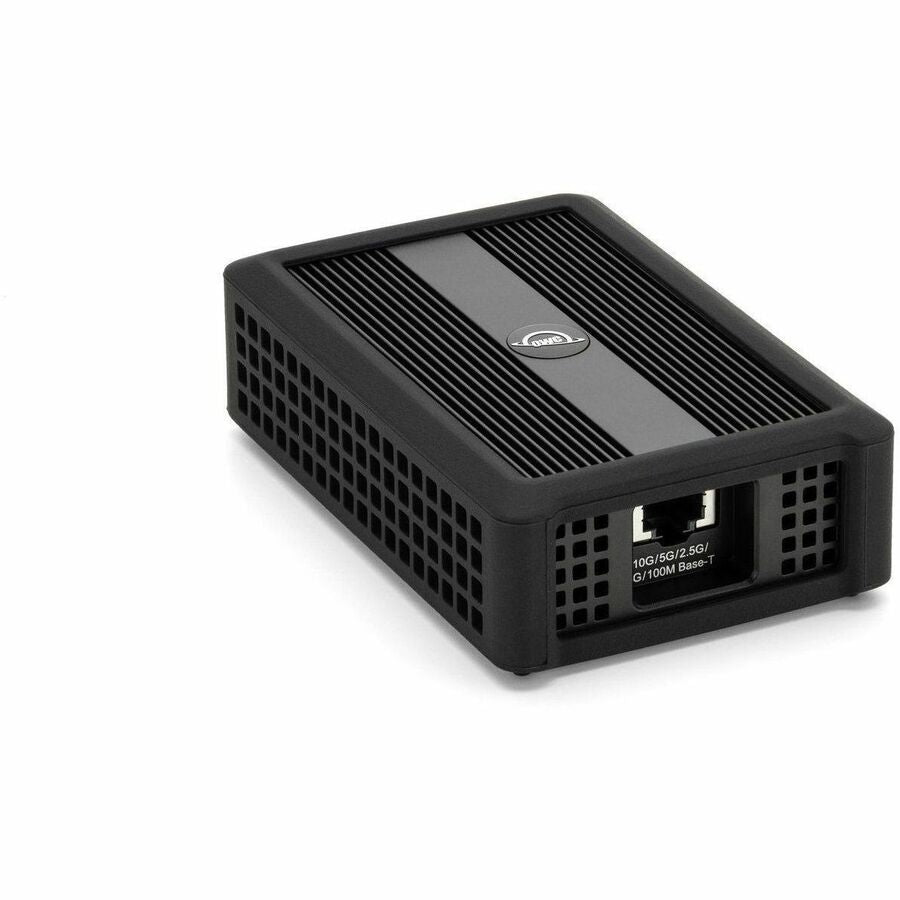 Connecting the OWC Thunderbolt 10G Ethernet Adapter to your Thunderbolt 3-equipped Mac or PC adds warp speed file transfers to your workflow. Now you can access 10GBASE-T 10Gb Ethernet networks and other devices, such as a Network Attached Storage (NAS) system, to transfer large multimedia files at over 900MB/s real-world speed. While improving project efficiency and workgroup collaboration with the quickest network connection available, the adapter is also backwards compatible with other Ethernet standards including 5GBASE-T, 2.5GBASE-T, 1000BASE-T, and 100BASE-T.