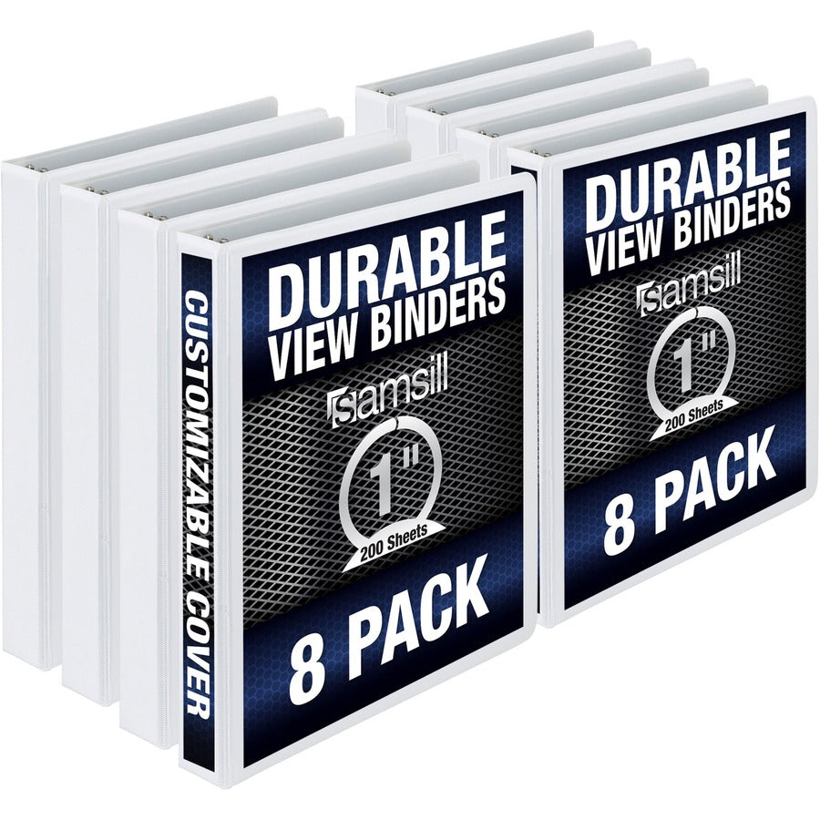 "Besides storing documents, a binder is also an ever-present accomplice of office goers, students, and homeowners looking to be more productive and organized. This 8 pack of durable white one-inch binders feature a clear overlay on the front, back, and spine giving full control and flexibility over customization of presentations, organizational projects, office reports, class projects, and more. Order multiple binders to create a custom reference system for weekly or monthly office reports, multiple classes at school, or other unique personal or professional projects.