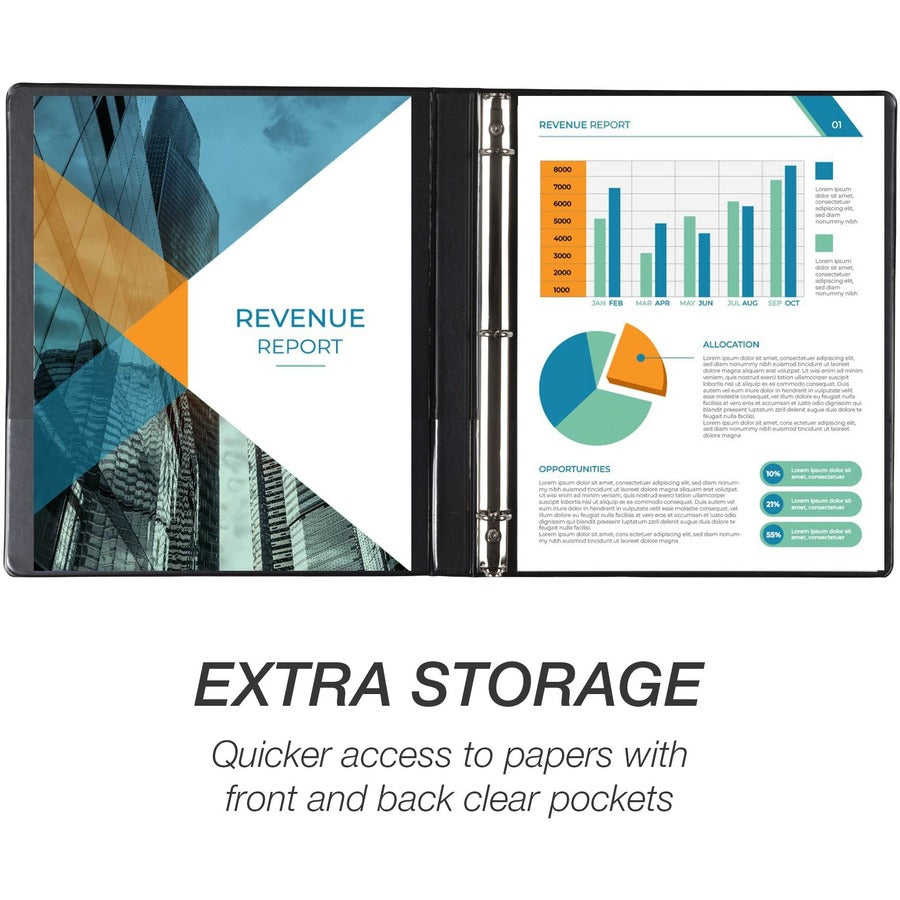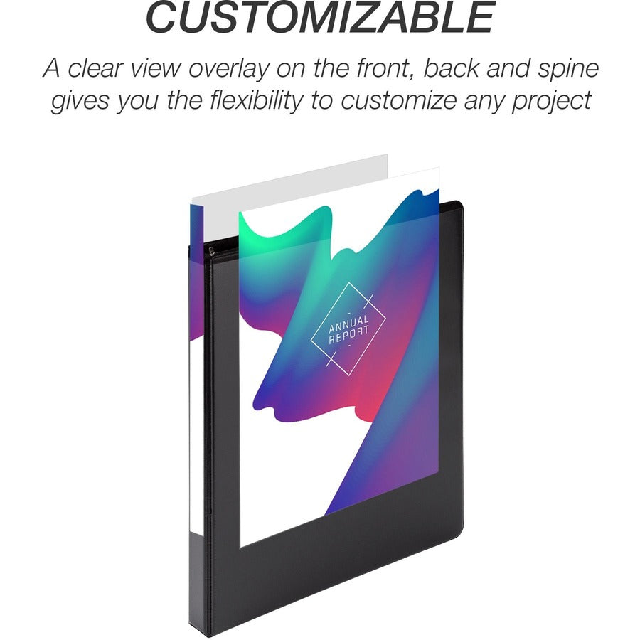 - Easy Customization: Perfect for organization and presentations, this half-inch binder allows for complete customization via a clear overlay with a non-glare finish; 2 clear interior pockets provide additional paper storage