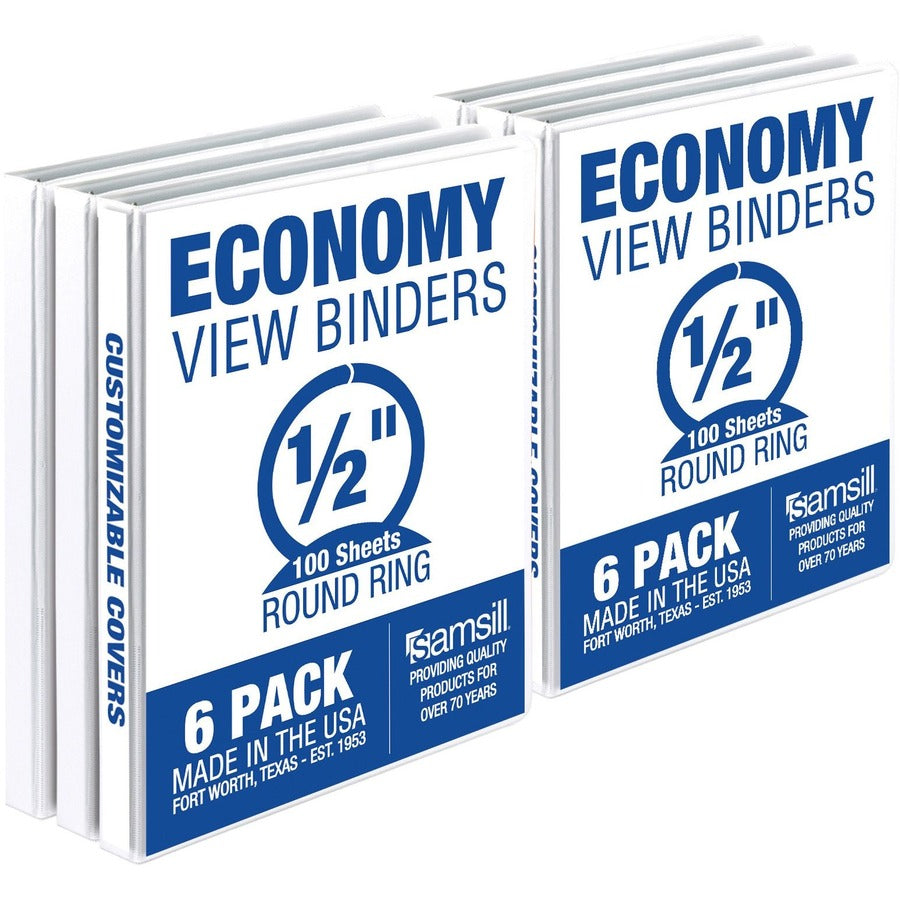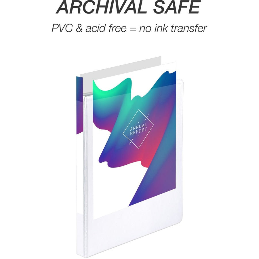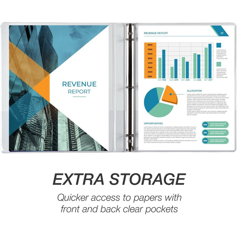 Customizable clear overlay on front, back, and spine. Exposed-rivet construction and two clear inside pockets. Contains 40% post-consumer recycled content.