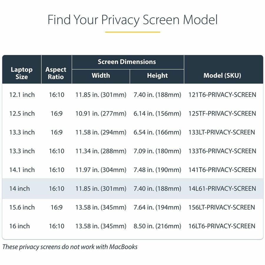 This Laptop Privacy Screen is designed to work with laptops with a 14-inch 16:10 display.