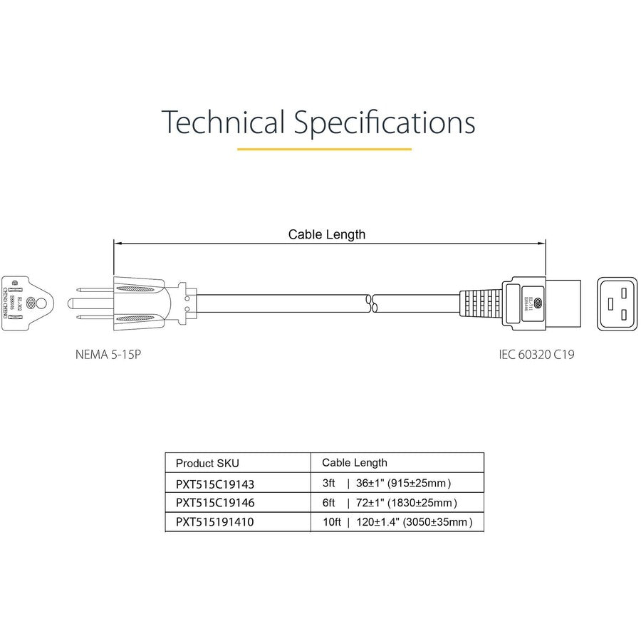 Expertly designed and constructed of high-quality materials, the StarTech.com PXT515C19146 power cord is backed by a lifetime warranty.