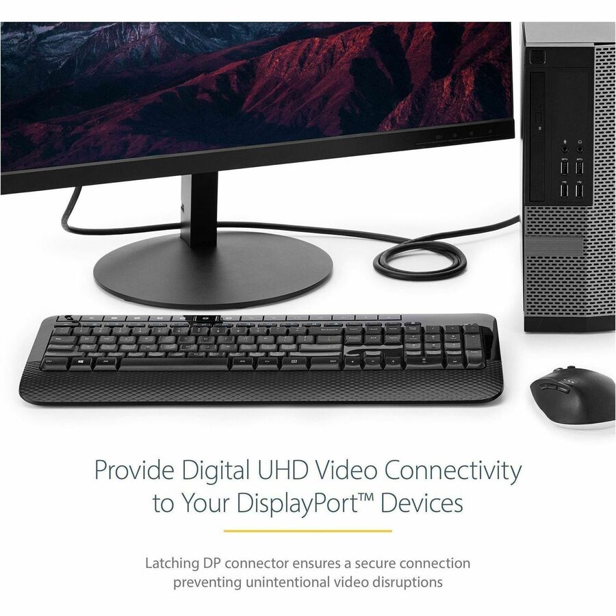 - HIGH PERFORMANCE CABLE: This 6ft (2m) VESA Certified DisplayPort v1.2 cable supports 4K x 2K (3840x2400p 60Hz), 21.6 Gbps bandwidth, HBR2, 8Ch Audio, Multi-Stream Transport (MST), GTC for precise audio channel timing & 3D Stereo (2560x1600p 120Hz)