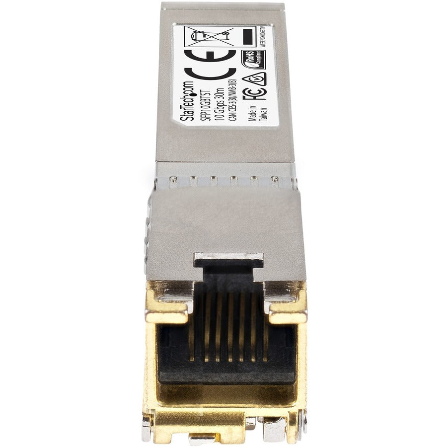 The SFP10GBTCST is a Cisco compatible copper transceiver module that has been designed, programmed and tested to work with Cisco® brand switches and routers. It delivers dependable 10 GbE connectivity over copper cable, for 10GBASE-T compliant networks, with a maximum distance of up to 30 m (98.4 ft).