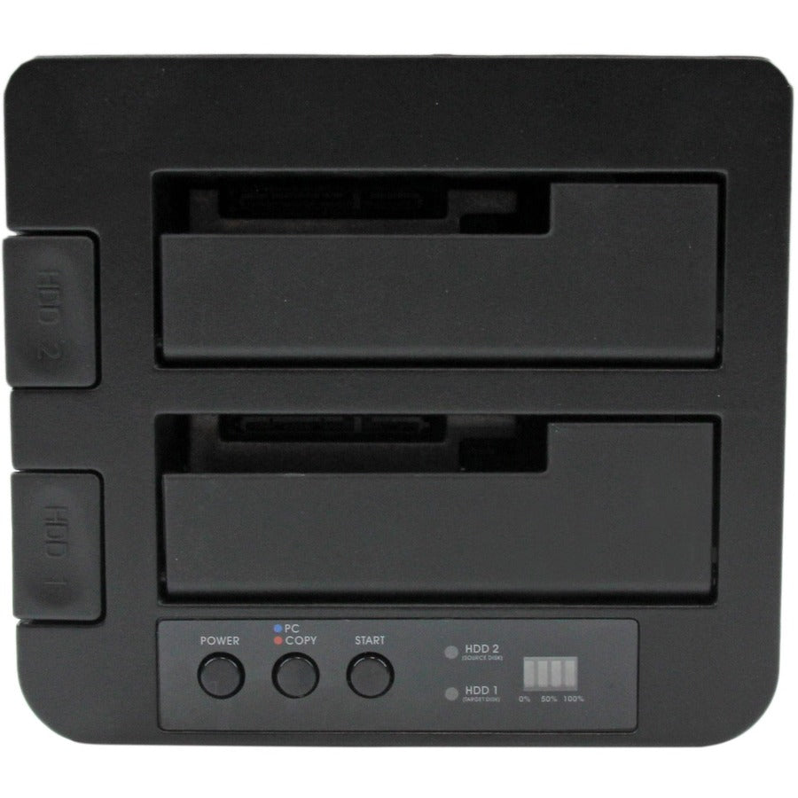 - SPECS: External 2-Bay Duplicator Dock SATA I/II/III; USB 3.2 Gen 1 (5 Gbps) or eSATA Device Host Connection (optional); Toolless Design; Top-Loading Toaster Style w/ Drive Doors and Eject Buttons; Multi-function Status LEDs