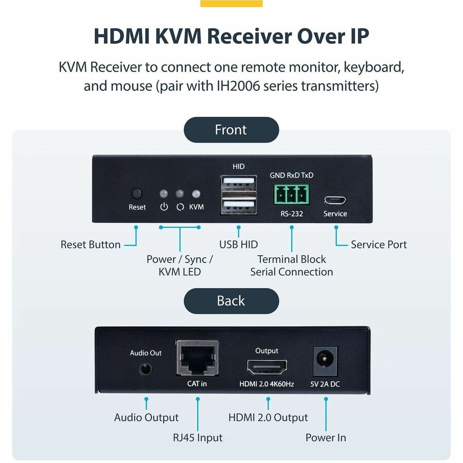 - AVoIP KVM RECEIVER: When paired with an IH2006 transmitter (sold separately), you can remotely access and control a computer over a TCP/IP network using a keyboard, mouse, and 4K 60Hz HDMI monitor, providing secure and seamless remote operation