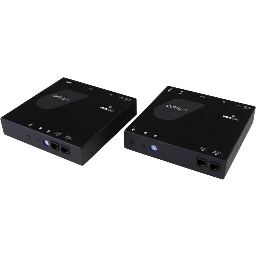 This HDMI® over IP kit lets you extend an HDMI signal, as well as four USB peripheral device connections, over your network. You can use additional receivers (sold separately) to distribute the HDMI and USB signals to multiple locations and combine your remote displays to create a video wall while using the USB connection to extend a touch screen to create an interactive digital signage presentation.