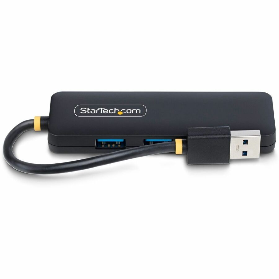 With three ports on one side and one on the end, this hub provides easy access for connecting and disconnecting devices.