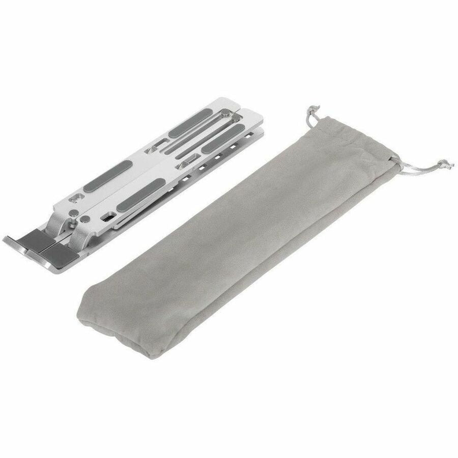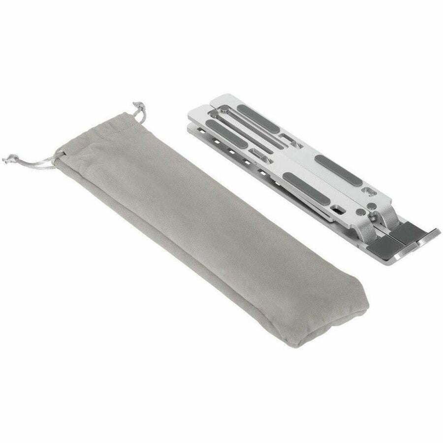 Stylish and durable, the stand is made of high-quality aluminum with high heat reduction to help prevent your device from overheating. Compact and lightweight, the stand folds flat for easy portability and storage. A bonus grey pouch is also included for convenient carrying.