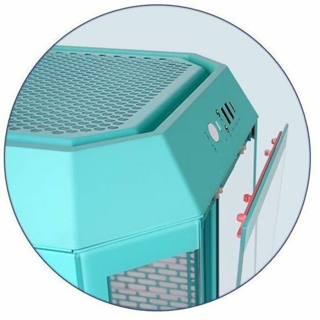 The Tower 250 Mint Strawberry retains the iconic contours of its predecessors, with a vertical body design but in an octagonal prism shape, allowing the chassis to have a smaller footprint and providing flexibility while minimizing obstructions to your gaming and workspace.