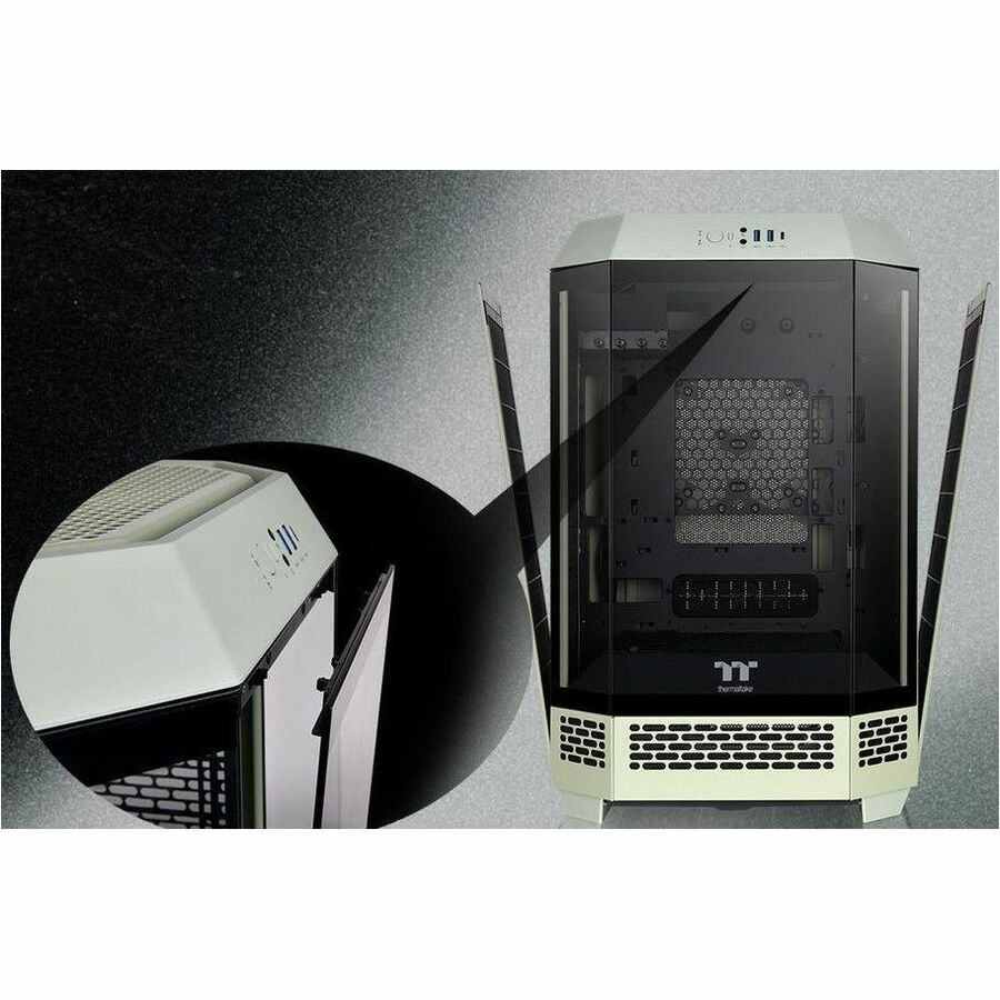 The Tower 300 Matcha Green is an m-ATX case with a classic vertical case design and comes in an octagonal prism shape. It supports up to a 420mm AIO radiator on the right side and can accommodate up to eight 120mm/140mm fans. With a separately sold Chassis Stand Kit, users can enjoy a unique view with a special horizontal placement.