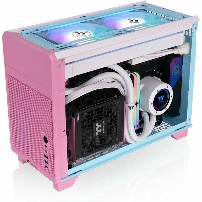 The TR100 Bubble Pink supports graphics cards up to 360mm in length and 70mm in thickness. The detachable rear PCI-E panel and integrated GPU holder make it easy to install and secure large, thick GPUs in a portable gaming system.
