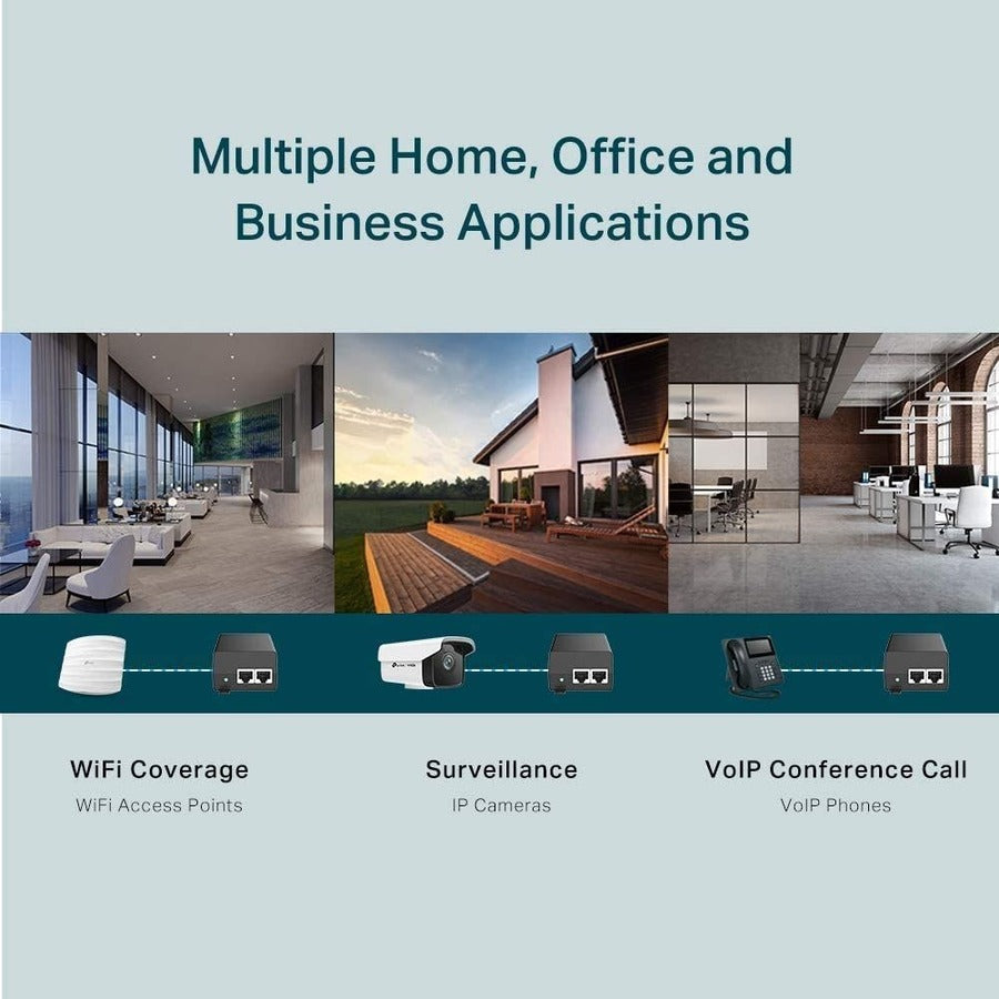 - [802.3at/af PoE Compliant ]TL-PoE160S supplies power and data via one single ethernet cable to 802.3at/af PoE devices and expands network to areas with no power lines or outlets.