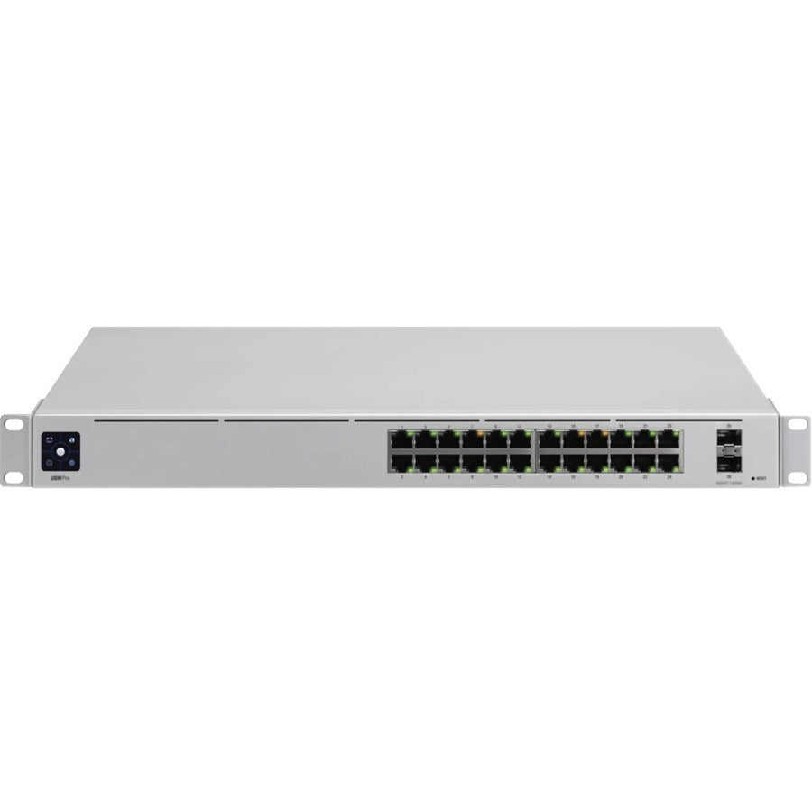 UniFi Switch Pro 24 is a fully managed Layer 3 switch with (24) Gigabit Ethernet ports. (2) 10G SFP+ uplinks offer link aggregation for higher capacity and increased availability. The UniFi Switch Pro 24 features a rich set of Layer 2 capabilities and integrates Layer 3 functionality such as inter-VLAN routing, static routing, and DHCP server. The UniFi Switch Pro 24 is an ideal aggregation and access layer switch for any UniFi solution - it combines innovative near-silent cooling with UniFi SmartPower RPS power redundancy. UniFi Network Application and UniFi Network mobile app allow admins to configure and monitor virtually all of the switch features in an intuitive graphical user interface from anywhere.